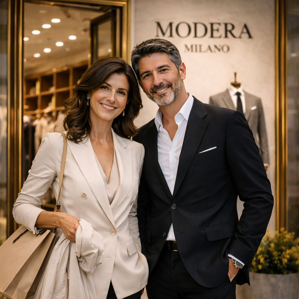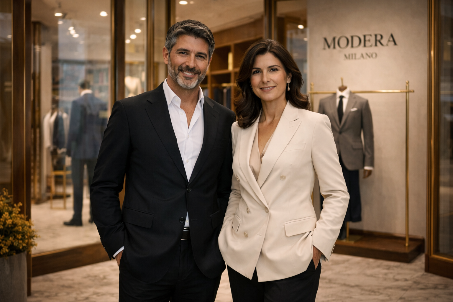 Dopo anni di esperienza nel mondo della moda, hanno unito le forze trasformando la loro visione in realtà. Da oltre dieci anni, Modera Milano è sinonimo di qualità, servizio personalizzato e attenzione ai dettagli. Elena e Giulio credono in un approccio personale, restando sempre vicini ai clienti e anticipando le nuove tendenze, con l’obiettivo di far sentire ogni cliente sicuro, valorizzato e soddisfatto.